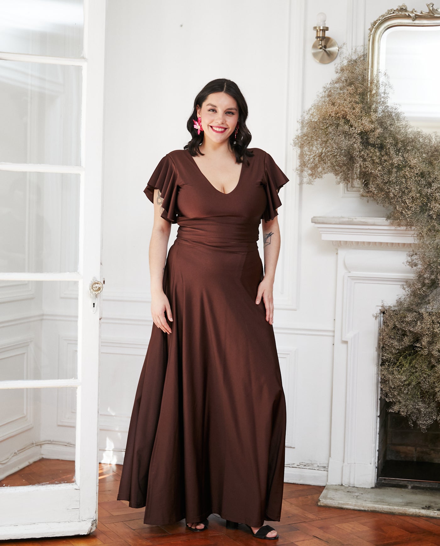 Conjunto de Fiesta Isa Dupont Chocolate confeccionado en tela elasticada, con abertura en la pierna que realzan la figura. Su diseño con un diseño equilibrado entre elegancia y comodidad lo convierte en una opción elegante para invitada matrimonio de noche, graduación, fiesta gala, fiesta empresa, invitada matrimonio de día. Este diseño es parte de nuestra Colección CHILE.