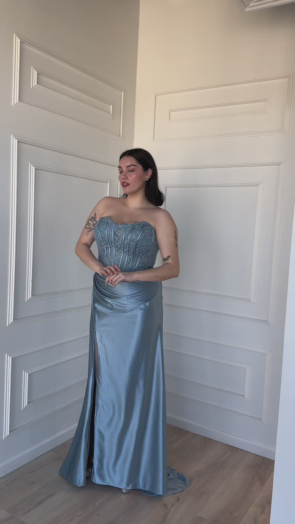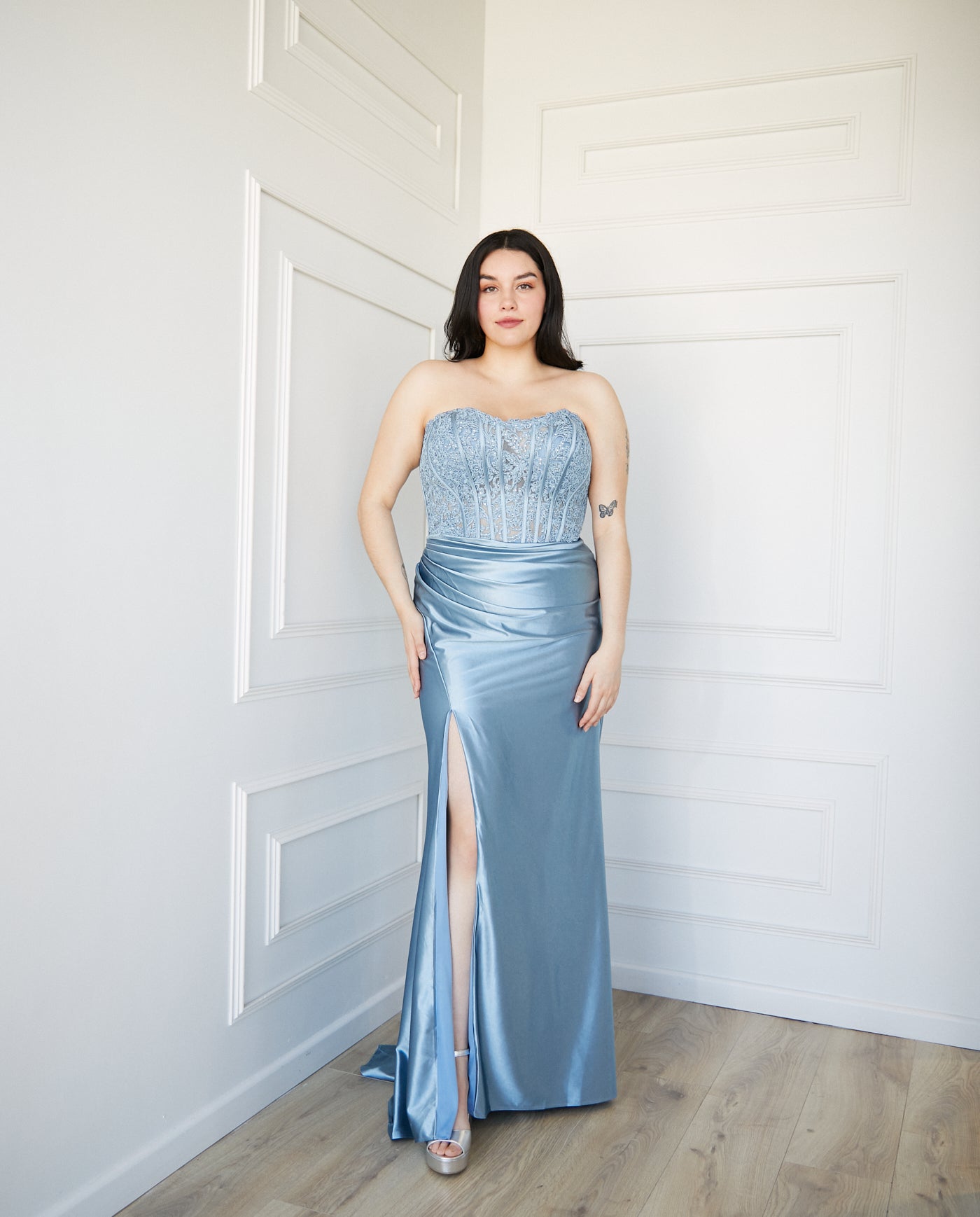 Vestido Largo de Fiesta Zahara Celeste confeccionado en Lycra, con abertura lateral , drapeado en la cintura y cola posterior. El corset realza la cintura y define la silueta, de igual forma la abertura en la pierna ofrece libertad de movimiento y un toque de sensualidad. Ideal para invitada matrimonio de noche y graduación. Este vestido es parte de nuestra colección EE.UU.