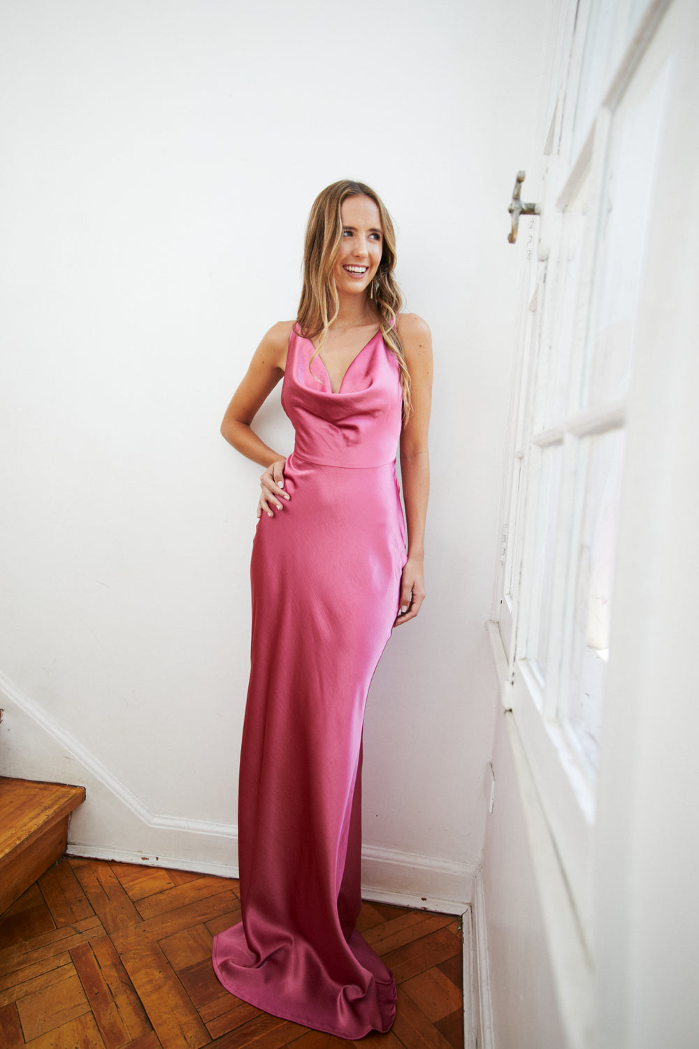 VESTIDO LARGO DE FIESTA DANAE ROSADO