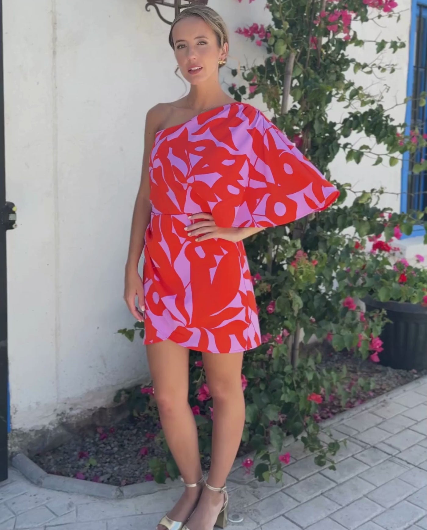 Vestido Corto de Fiesta Adela Fondo Rojo