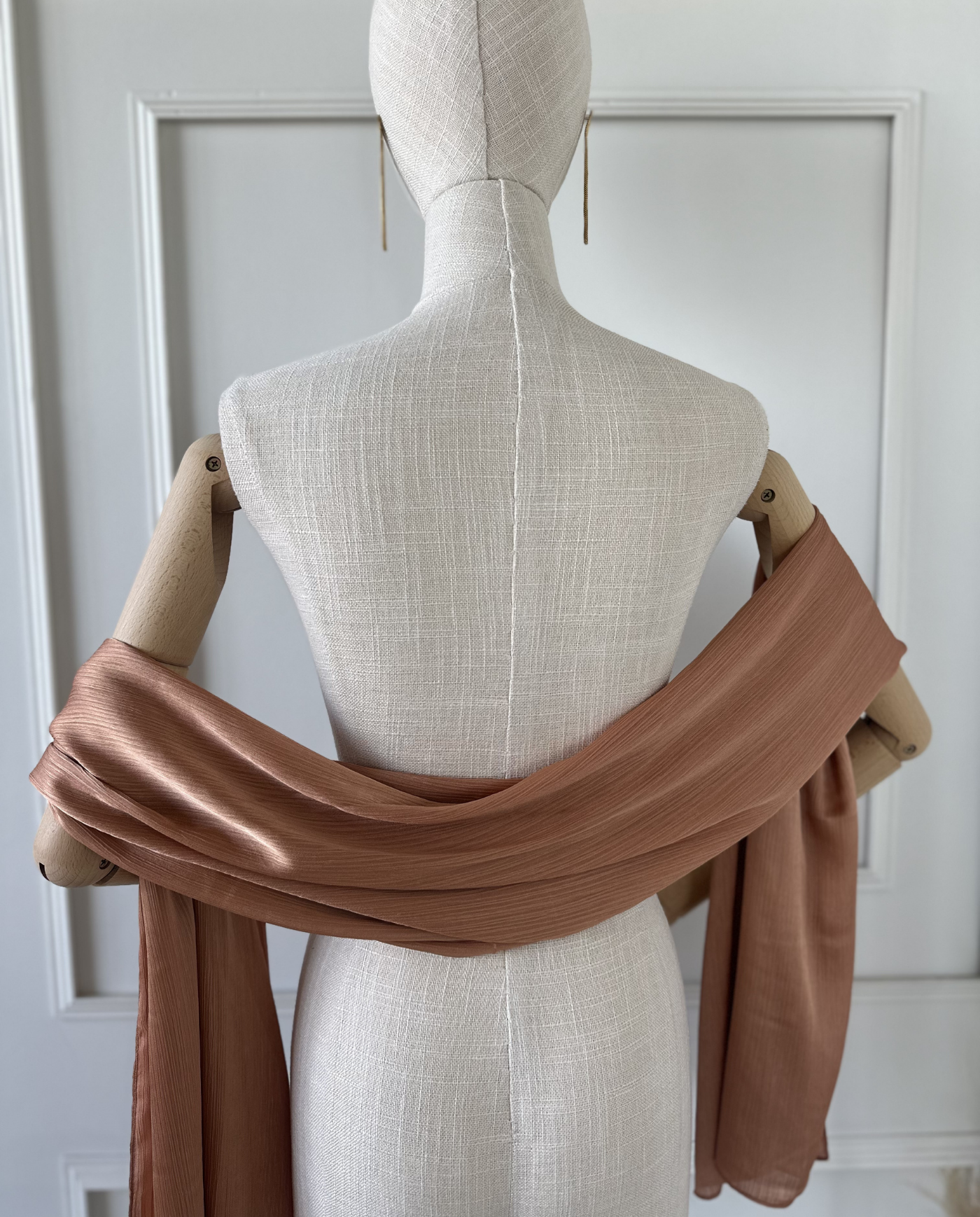 La tela satinada con textura aporta brillo sutil y estructura, logrando un acabado más sofisticado y definido que la gasa. Perfecto para complementar vestidos lisos, vestidos de noche o looks minimalistas que necesitan un toque de luz.