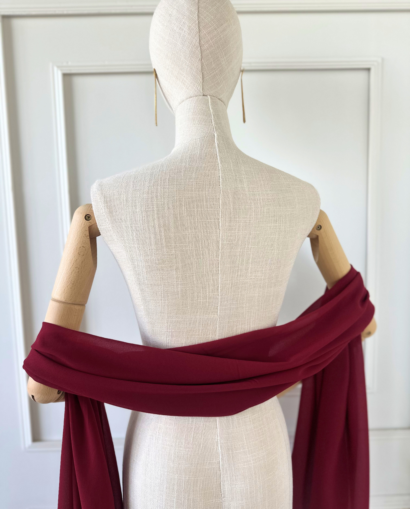 Maxi pañuelo de gasa ideal para complementar vestidos de fiesta, looks de invitada, graduaciones y matrimonios. Su tamaño extra largo (180 x 70 cm) permite usarlo como capa, chal, echarpe o sobre los hombros, creando distintas formas según el estilo de tu vestido.