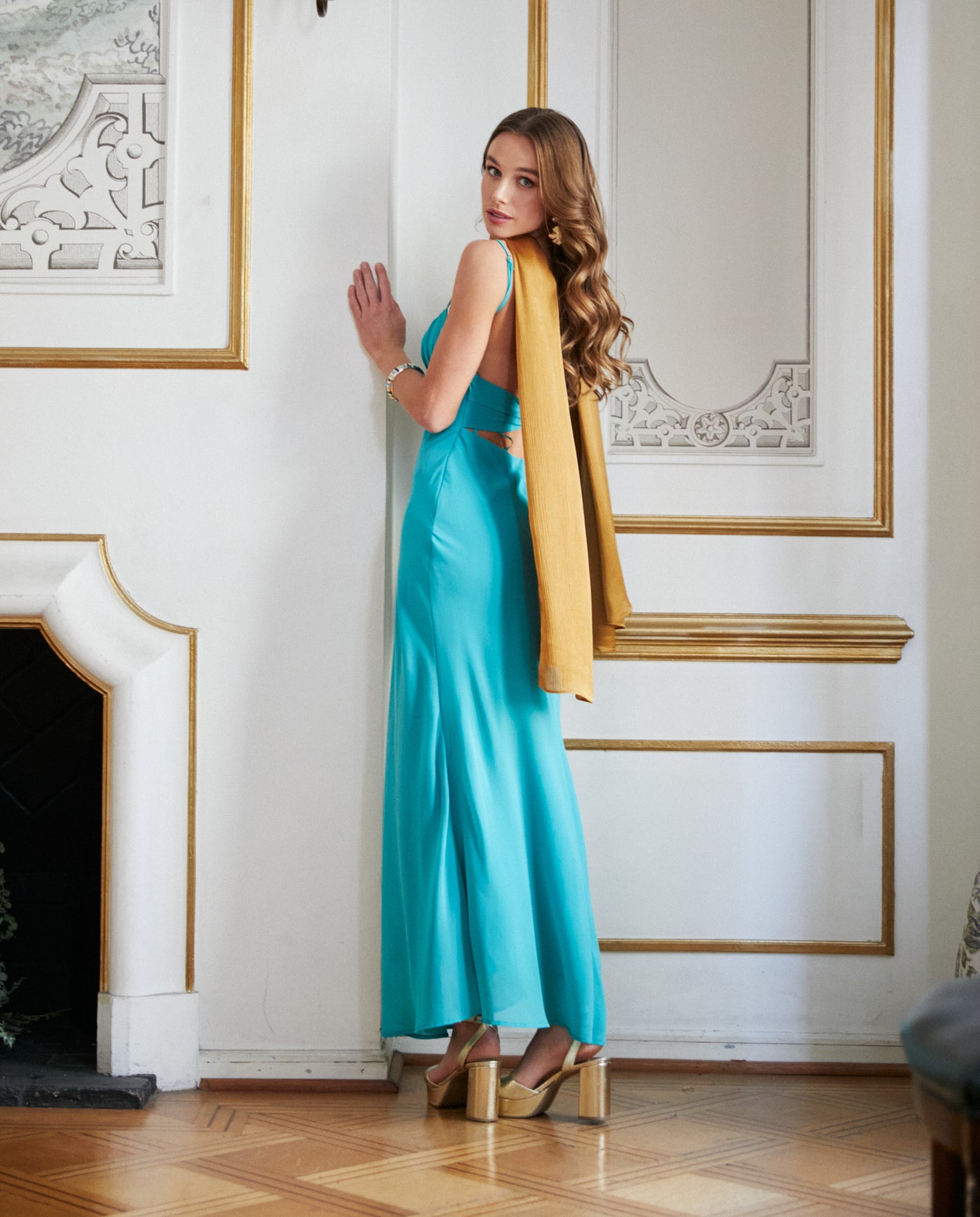 Nuestro Maxi pañuelo Antonia de satín con textura en líneas, es ideal para elevar vestidos de fiesta, looks de invitada y outfits formales. Su formato amplio permite usarlo como capa elegante, chal de fiesta o echarpe para matrimonio.