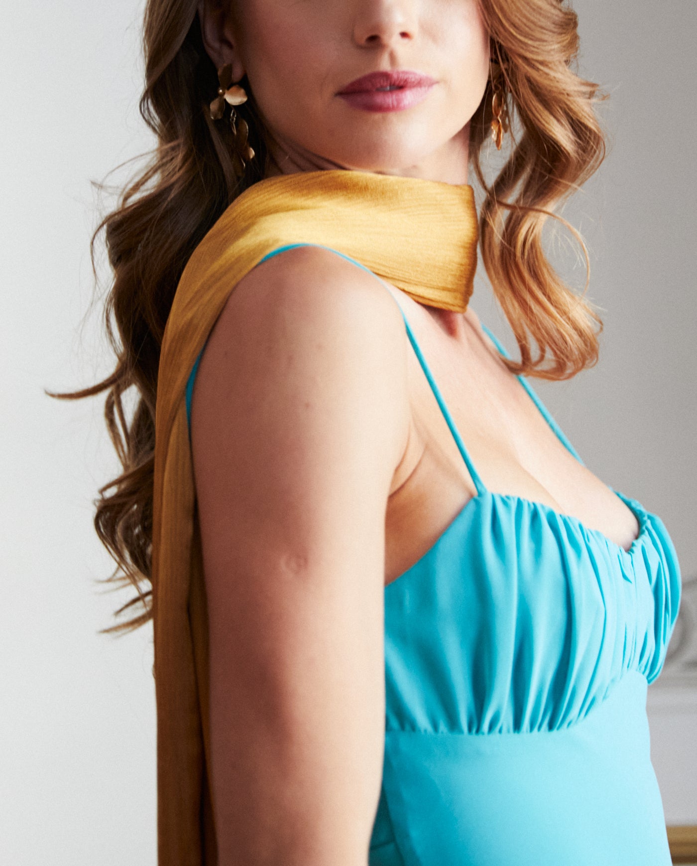 Pañuelo Antonia Satín Plisado Mostaza