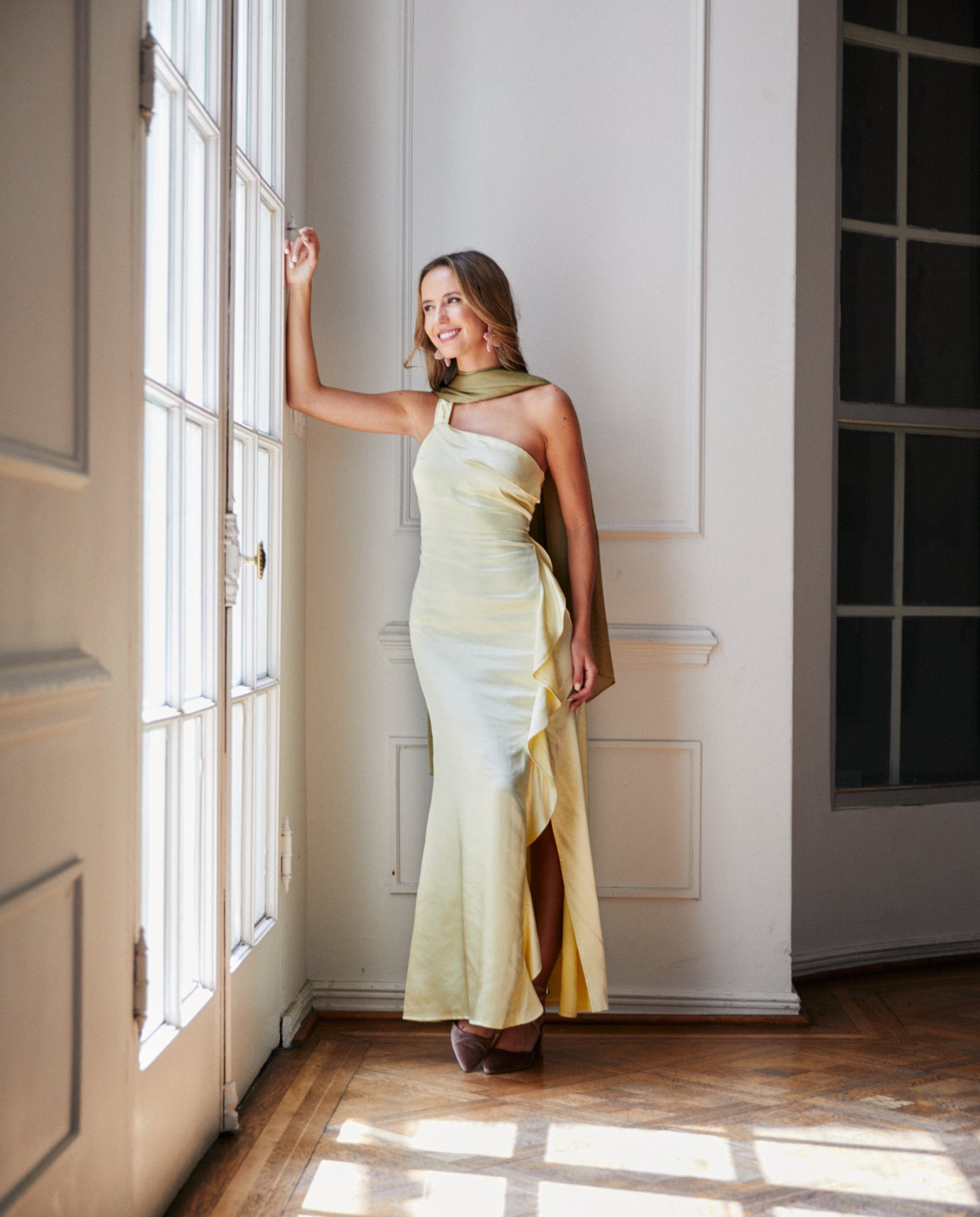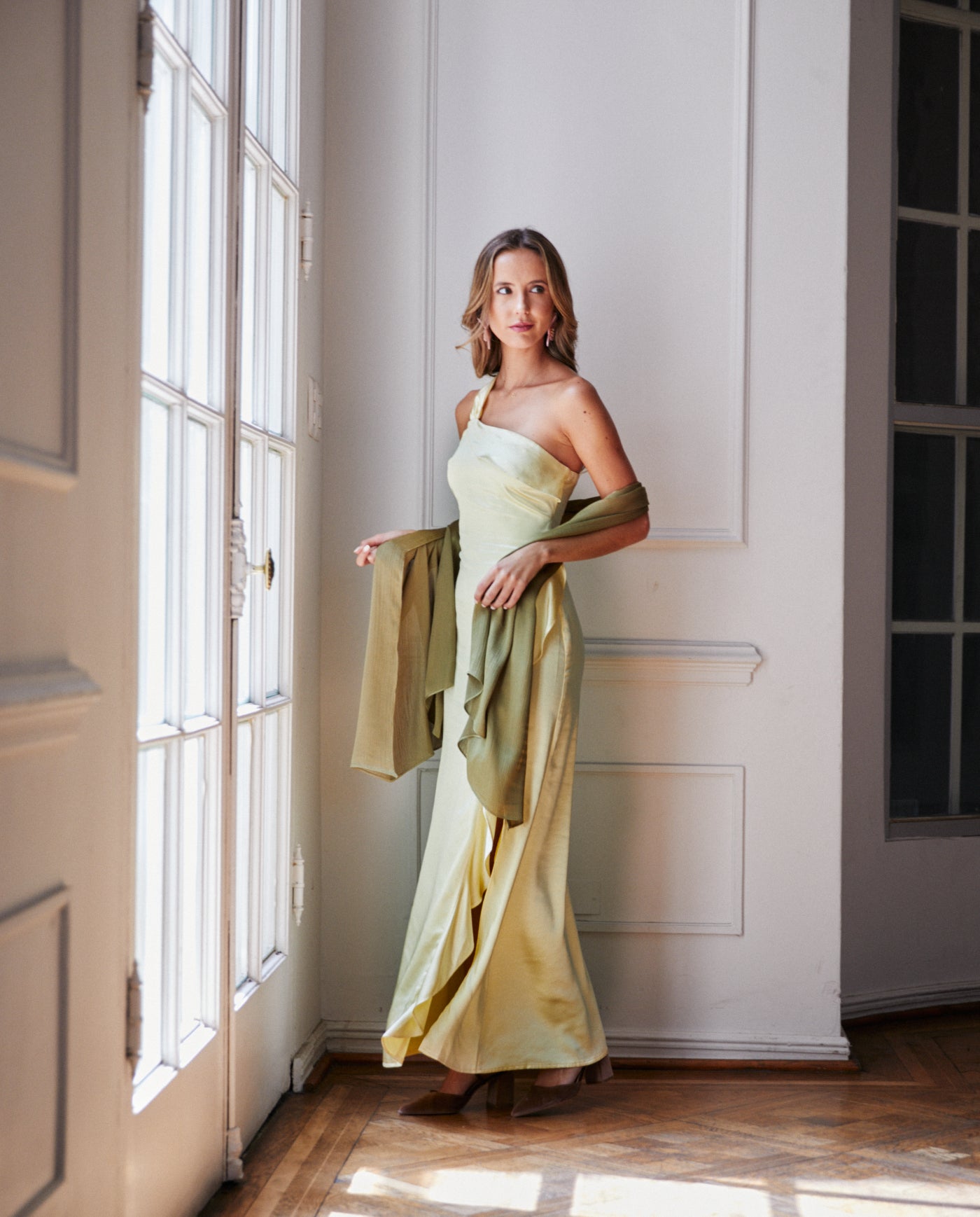 Nuestro Maxi pañuelo Antonia de satín con textura en líneas, es ideal para elevar vestidos de fiesta, looks de invitada y outfits formales. Su formato amplio permite usarlo como capa elegante, chal de fiesta o echarpe para matrimonio.