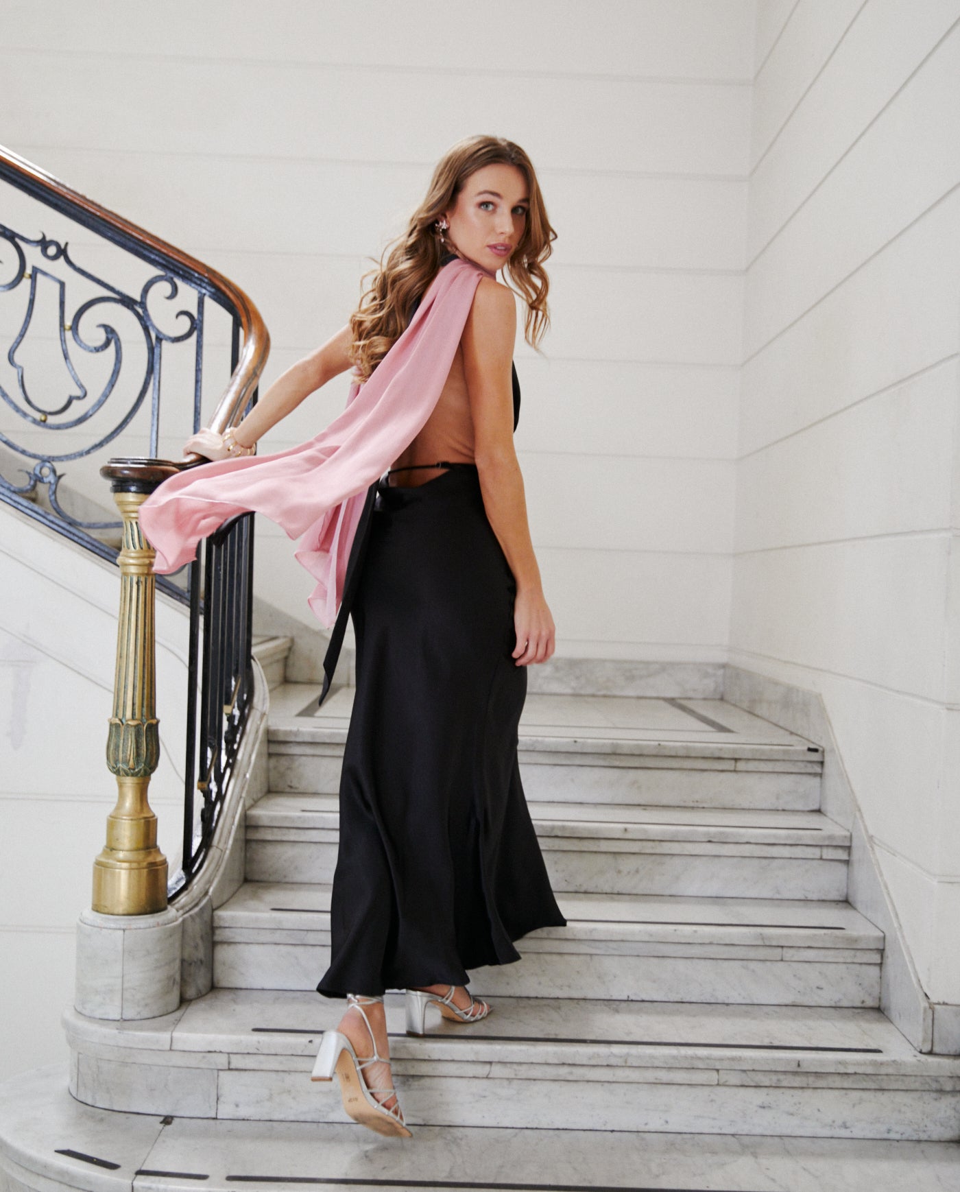 Nuestro Maxi pañuelo Antonia de satín con textura en líneas, es ideal para elevar vestidos de fiesta, looks de invitada y outfits formales. Su formato amplio permite usarlo como capa elegante, chal de fiesta o echarpe para matrimonio.