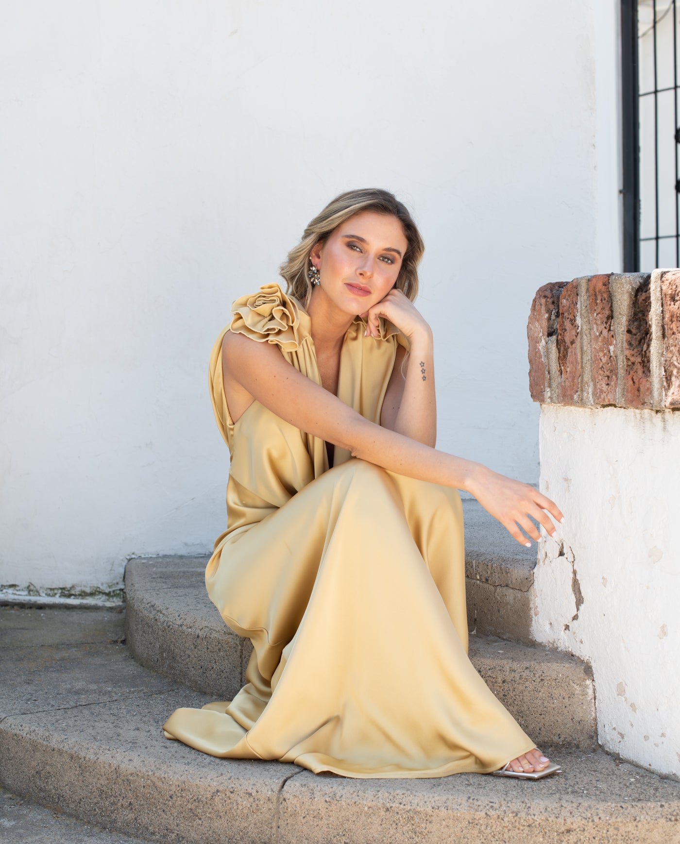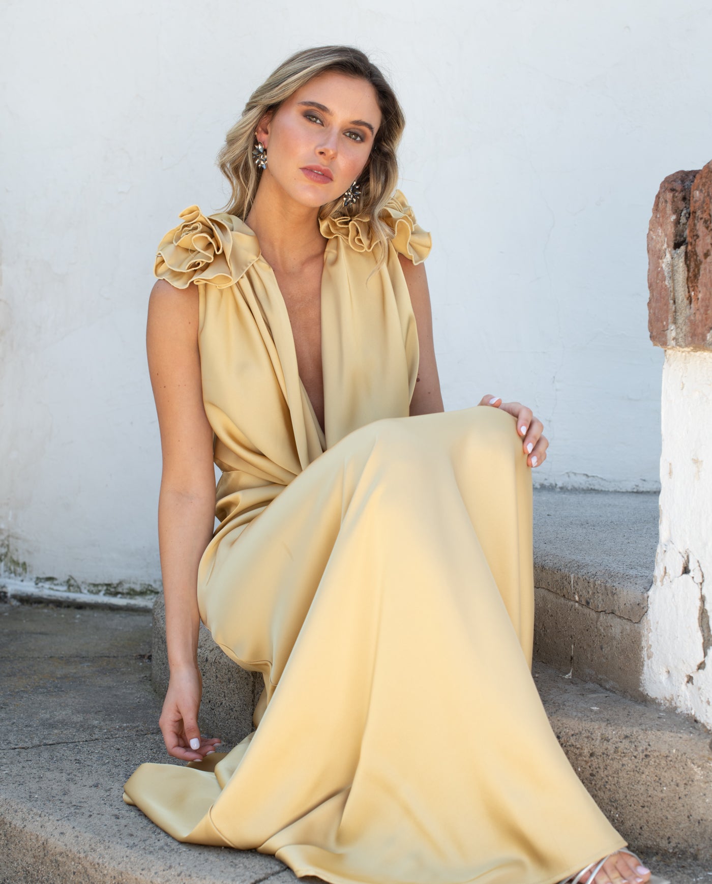 Vestido Largo de Fiesta Cartagena Flores Dorado